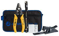 De TK-183-reinigingsset voor glasvezelconnectoren van Jonard Tools biedt reinigings- en voorbereidingsproducten voor gebruik op eindvlakken van 1,25 mm en 2,5 mm connectoren en schotadapters. Deze kit bevat een glasvezelstripper, een vezelhakmes, vochtige vezeldoekjes, een visuele foutzoeker en een robuuste draagtas.