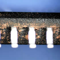 Gebruik van stereoscopische microscoop, het uiterlijk van componenten voor 360 ° allround observatie. De focus van de observatiestatus omvat productverpakkingen; chip type, datum, batch; staat van afdrukken en verpakking; pin arrangement, coplanair met de beplating van de behuizing enzovoort.